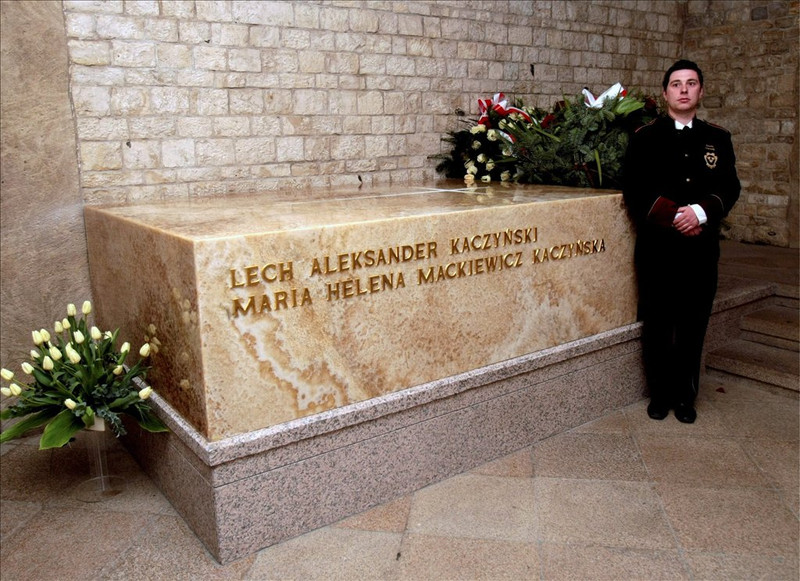 Nơi yên nghỉ của vợ chồng tổng thống Lech Kaczyński tại khu hầm mộ của Vương cung thánh đường Wavel, “thánh địa” của các vua chúa, anh hùng dân tộc và vĩ nhân Ba Lan