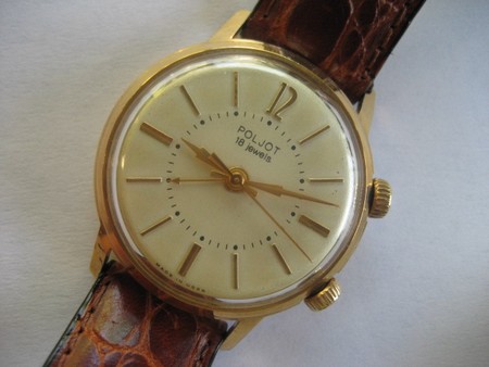 Một thời “đồng hồ Liên Xô tốt hơn đồng hồ Thụy Sĩ...” - Minh họa: đồng hồ Liên Xô hiệu Poljot mạ vàng AU20, lên dây cót, có chuông/rung sản xuất tại Liên Xô vào thập niên 60-70 thế kỷ trước - Ảnh: muabanraovat.com
