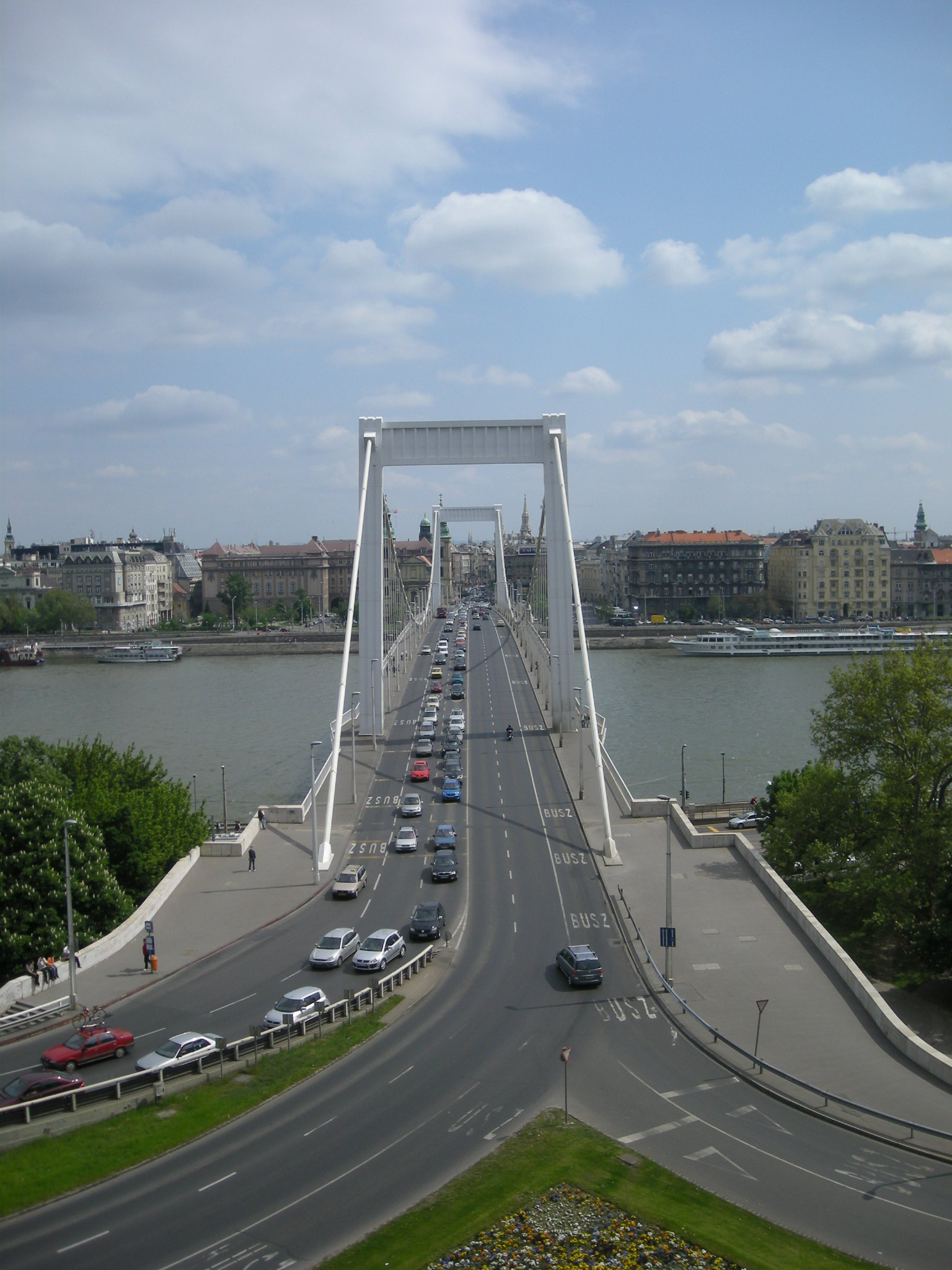 Sông Danube chia Budapest thành hai phần tách biệt: Vùng đồi núi Buda với thành quách và cung điện của vua chúa ngày xưa. Phía Pest là bình nguyên với các tòa nhà cổ kính thời Trung cổ. Buda và Pest được nối với nhau bằng bảy cây cầu. Mỗi cây cầu mang một vẻ đẹp riêng và là chứng nhân của lịch sử, là huyết mạch nối hai bên thành phố. Trong số bảy cây cầu đó, tôi yêu nhất là hai cây cầu: cầu Xích và cầu Elisabeth. Cầu Xích (Chain Bridge hay Lánchíd trong tiếng Hungary) là chiếc cầu mang vẻ đẹp hoành tráng nhất với 4 con sư tử nghễu nghện há miệng ngự hai bên đầu cầu. Một người bạn mới quen ở bên này có kể cho tôi nghe một truyền thuyết: vị kiến trúc sư thiết kế ra 4 con sư tử đó rất tự hào về công trình mà ông coi là không hề chút khiếm khuyết nào, cho đến một ngày ai đó phát hiện ra những đứa con tinh thần của ông - bốn chú sư tử - không có lưỡi, khiến ông buồn và tự tử! Mỗi lần đi qua cầu Xích, tôi lại ngắm nhìn những con sư tử trắng với chiếc bờm oai phong hướng nhìn lên Budai Vár, nơi du khách ngày ngày đi trên buồng thang máy làm bằng gỗ lên du ngoạn thành cổ. Chiếc cầu thứ hai - cầu Elisabeth (Erzsébet hid) - đã làm tôi tốn bao nhiêu công sức loay hoay chụp hàng trăm bức ảnh từ chân tượng Thánh Gellért lưng chừng núi mà vẫn không thể diễn tả nổi vẻ đẹp giản dị mà tinh khiết của cây cầu treo màu trắng này. Cứ mỗi lần dừng chân bên bờ sông, nhìn hướng về cây cầu, tôi lại thấy hiện lên hình ảnh hoàng hậu Elisabeth (Sissi) của Đế chế Áo - Hung hùng mạnh thế kỷ XIX. Cầu Elisabeth cũng là “sợi dây tình cảm” của tôi từ Pest hướng về đám bạn bè cùng lớp sống bên Buda. Cứ mỗi lần hẹn nhau đi đâu, đã thành một thói quen, chúng tôi lại gặp nhau ở chân chiếc cầu này.
